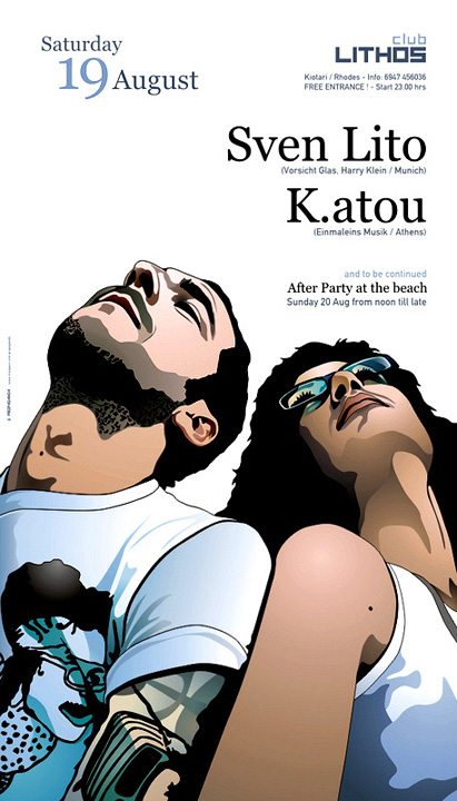 Description | Promotional artwork for an electronic music event in Rhodes (Greece). Guest DJs: Sven Lito (Vorsicht Glas) & K.atou (Einmaleins) |