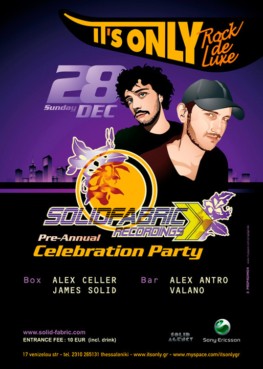 Description | Promotional artwork for an electronic music event in Thessaloniki (Greece). Solid Fabric Recordings Pre-Annual Party. |
