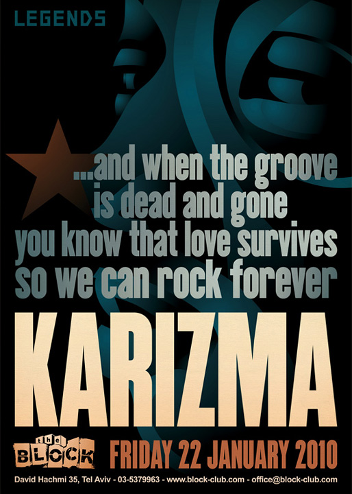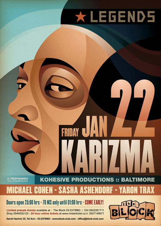 Description | Promotional artwork for an electronic music event in Tel Aviv (Israel). Guest DJ: Karizma (Kohesive Productions :: Baltimore). |