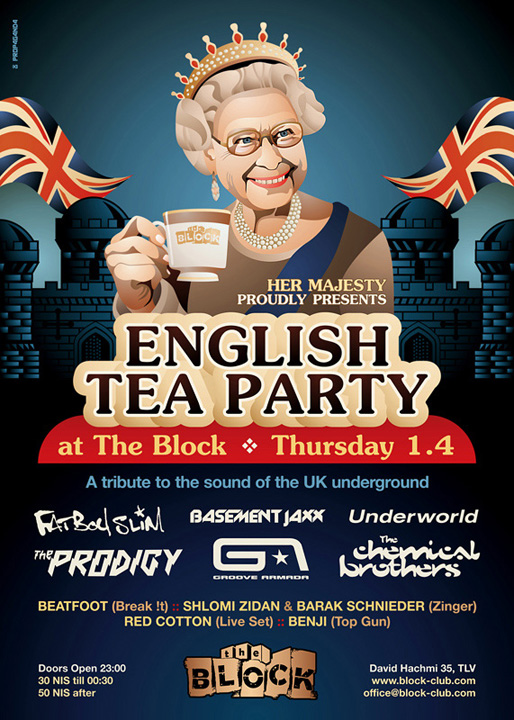 Description | Promotional artwork for an electronic music event in Tel Aviv (Israel). A tribute to the sound of the UK underground (with local DJs). |