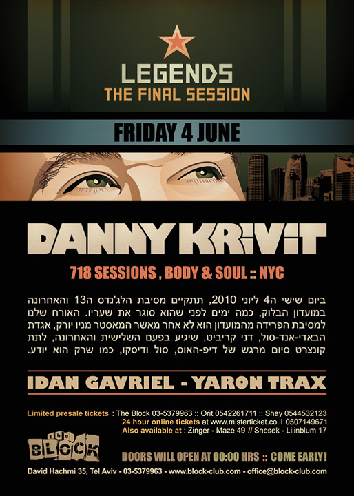 Description | Promotional artwork for an electronic music event in Tel Aviv (Israel). Guest DJ: Danny Krivit (718 Sessions, Body & Soul :: New York). |