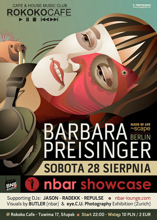 Description | Promotional artwork for an electronic music event in Słupsk (Poland). Guest DJ: Barbara Preisinger (~scape, Slices of Life :: Berlin). |