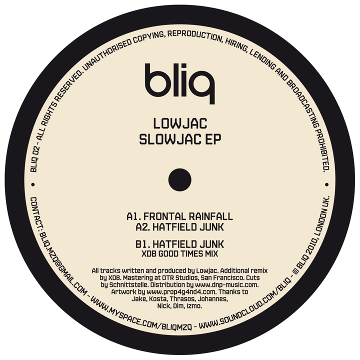Description | Vinyl Label design for BLIQ 02 release: Lowjack - Slowjack EP |