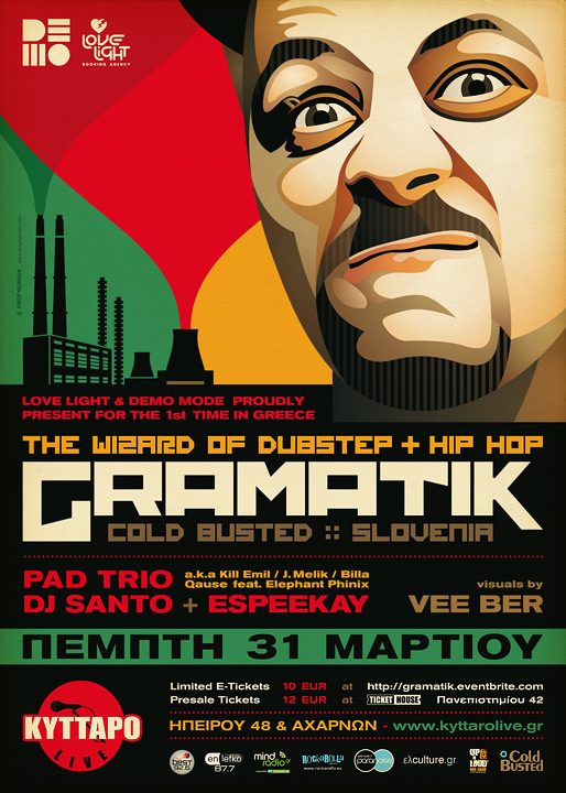 Description | Promotional artwork for an dubstep music event in Thessaloniki (Greece). Guest: Gramatik (Cold Busted :: Slovenia). |