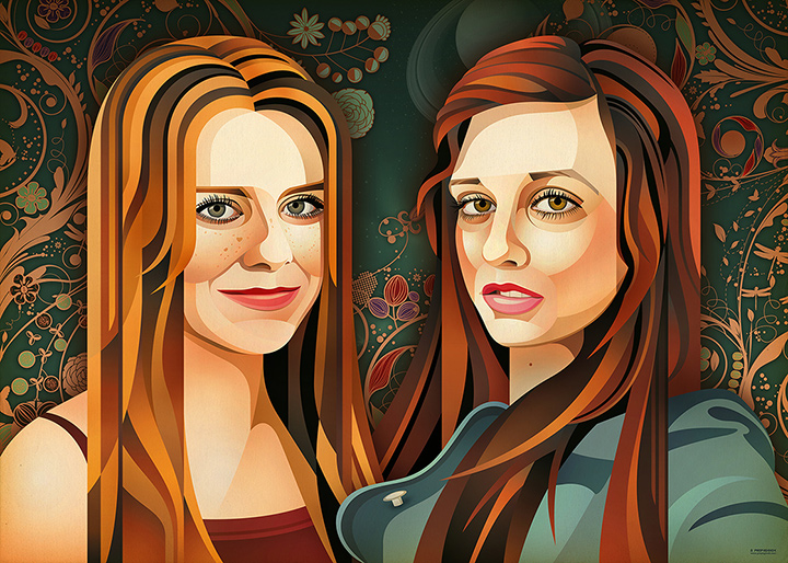 Description | Commissioned artwork for a personal present. Portrait illustration of Xenia & Anthea (Berlin, Germany). |