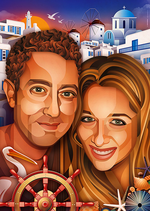 Description | Commissioned artwork for a wedding present. Portrait illustration of Eli & Keren (Tel Aviv, Israel). |