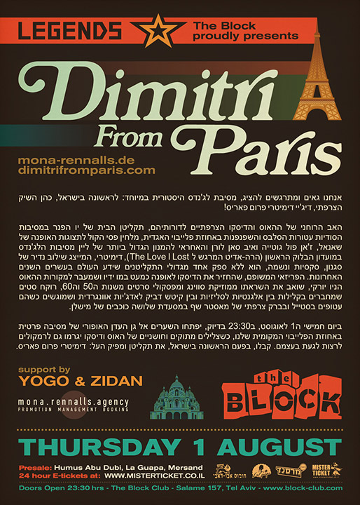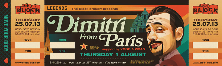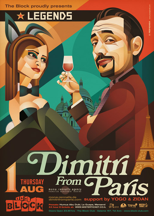 Description | Promotional artwork for an electronic music event in Tel Aviv (Israel). Guest DJ: DIMITRI FROM PARIS (Paris) |