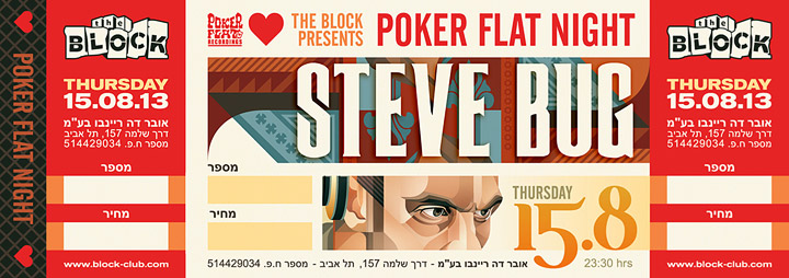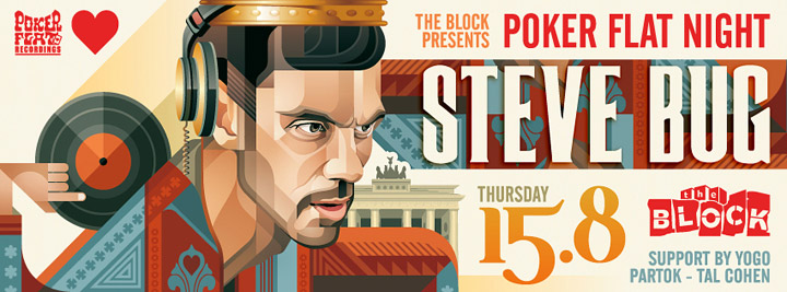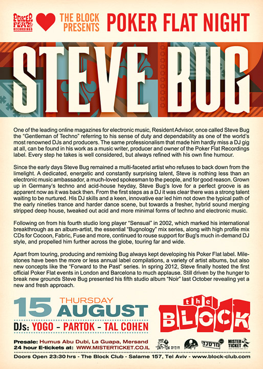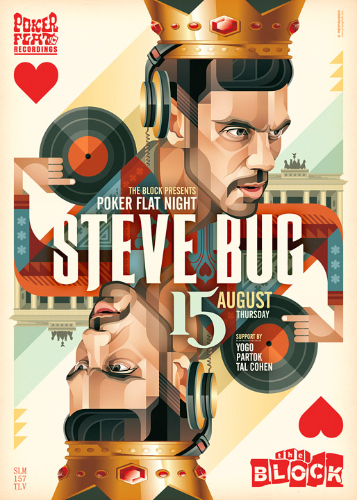 Description | Promotional artwork for an electronic music event in Tel Aviv (Israel). Guest DJ: STEVE BUG (Poker Flat :: Berlin) |