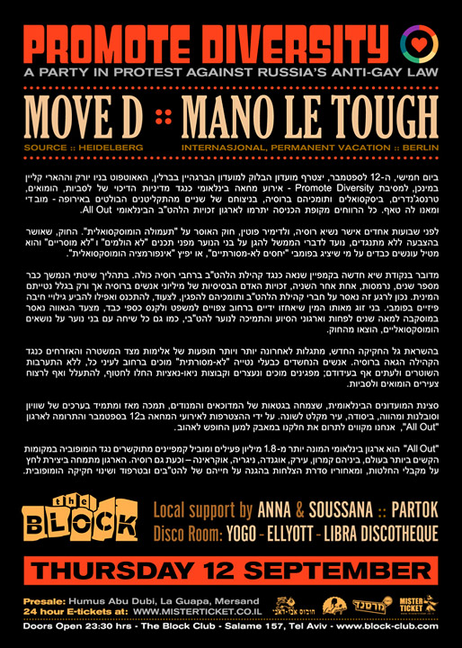 Title | Promote Diversity: A party in protest against Russia's anti-gay law |