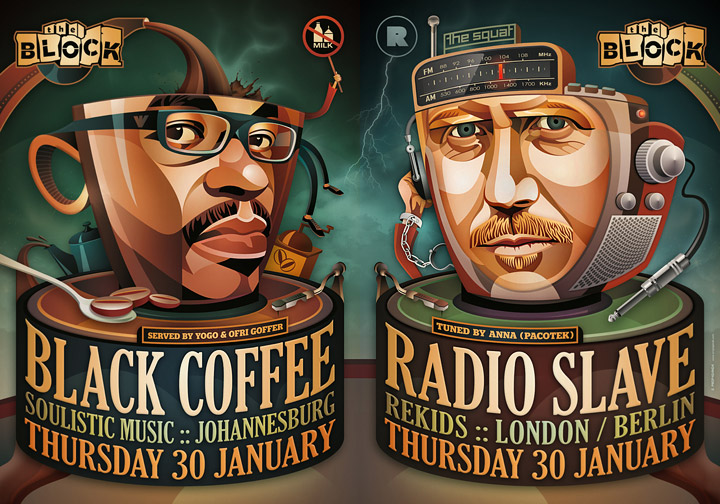 Description | Promotional artwork for an electronic music event in Tel Aviv (Israel). Guest DJs: BLACK COFFEE (Soulistic Music :: Johannesburg) RADIO SLAVE (Rekids :: London, Berlin) Support by: Yogo, Ofri Goffer // Anna (Pacotek) |