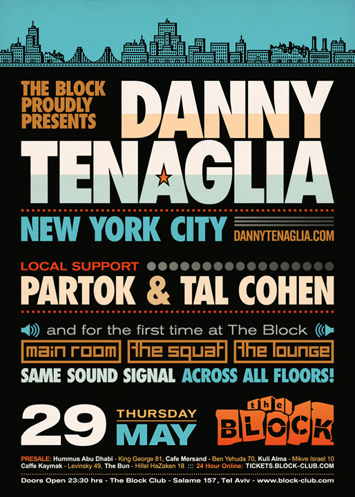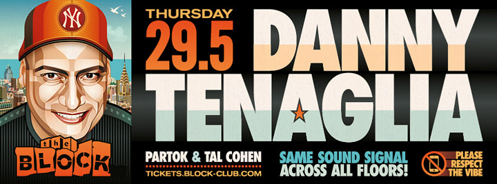 Description | Promotional artwork for an electronic music event in Tel Aviv (Israel). Guest DJ: DANNY TENAGLIA (New York City) Support by: Partok, Tal Cohen |