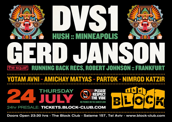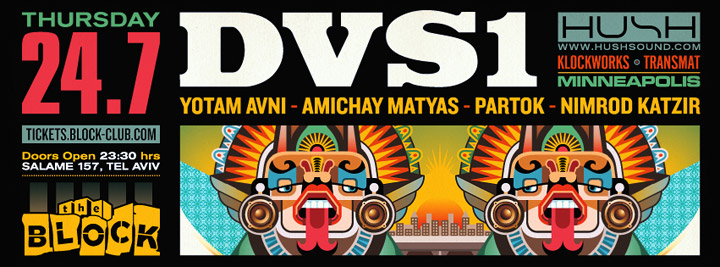 Description | Promotional artwork for an electronic music event in Tel Aviv (Israel). Guest DJs: DVS1 (Hush :: Minneapolis) GERD JANSON (Running Back :: Frankfurt) Support by: Yotam Avni, Amichay Matyas, Partok, Nimrod Katzir |