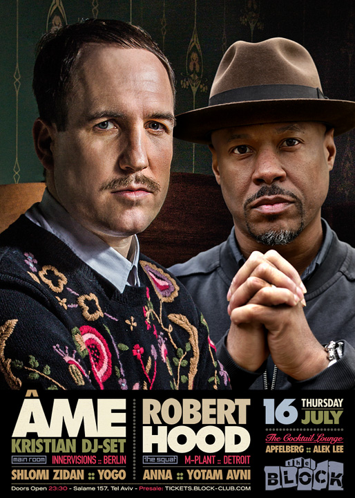 Description | Promotional artwork for an electronic music event in Tel Aviv (Israel). Guest DJs: ÂME DJ (Innervisions :: Berlin) ROBERT HOOD (M-Plant :: Detroit) The Block: Shlomi Zidan - Yogo The Squat: Anna - Yotam Avni The Lounge: Apfelberg - Alek Lee |