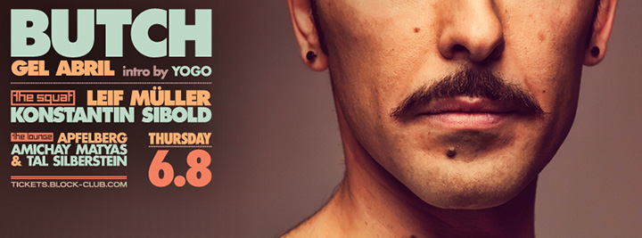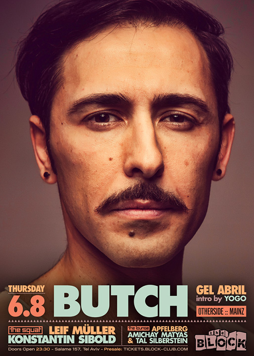 Description | Promotional artwork for an electronic music event in Tel Aviv (Israel). Guest DJs: BUTCH (Otherside :: Mainz) LEIF MÜLLER (Permanent Vacation :: Stuttgart) KONSTANTIN SIBOLD (Innervisions, Kompakt :: Stuttgart) Gel Abril - Yogo - Apfelberg - Amichay Matyas - Tal Silbersteink |