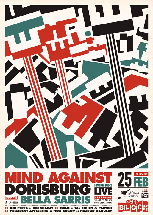 Description | Promotional artwork for an electronic music event in Tel Aviv (Israel). Guest DJs: MIND AGAINST (Life and Death :: Milan, Berlin) DORISBURG LIVE (Hivern Discs, Aniara :: Gothenburg) BELLA SARRIS (Enter :: Ibiza, Sydney) The Block: Roi Perez - Adi Shabat The Squat: Galo - Tal Cohen - Partok The Lounge: Apfelberg - Noa Argov - Nimrod Azoulay Artwork: Remake of Edward Wadsworth - Rotterdam (1914) |