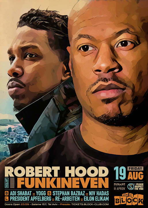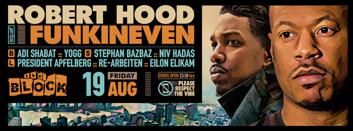 Description | Promotional artwork for an electronic music event in Tel Aviv (Israel). Guest Artists: ROBERT HOOD (M-Plant :: Detroit) FUNKINEVEN (Apron :: London) The Block: Adi Shabat - Yogg The Squat: Stephan Bazbaz - Niv Hadas The Lounge: Apfelberg - Re-Arbeiten - Eilon Elikam |