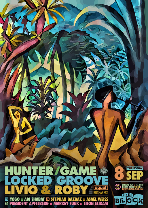 Description | Promotional artwork for an electronic music event in Tel Aviv (Israel). Guest Artists: HUNTER/GAME (Just This, Kompakt, Innervisions :: Milan) LOCKED GROOVE (Afterlife, Hotflush :: Berlin) LIVIO & ROBY (Desolat :: Bucharest) The Block: Yogo - Adi Shabat The Squat: Stephan Bazbaz - Asael Weiss The Lounge: Apfelberg - Markey Funk - Eilon Elikam |
