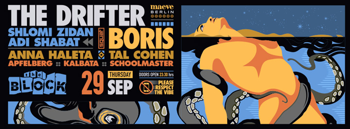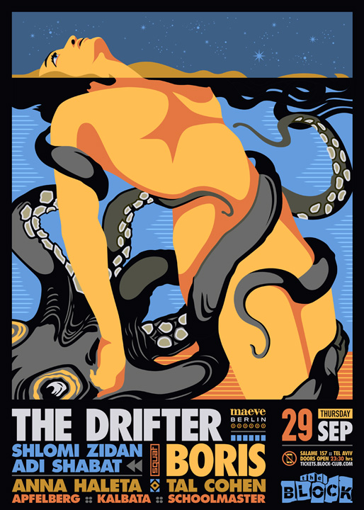 Description | Promotional artwork for an electronic music event in Tel Aviv (Israel). Guest Artists: THE DRIFTER (Maeve :: Berlin) BORIS (Ostgut Ton :: Berlin) The Block: Shlomi Zidan - Adi Shabat The Squat: Anna Haleta - Tal Cohen The Lounge: Apfelberg - Kalbata - Schoolmaster Artwork: Remake of Mikhail Kalmanson - Topiel (1917) |