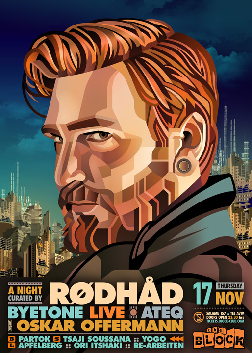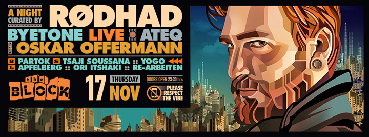 Description | Promotional artwork for an electronic music event in Tel Aviv (Israel). Guest Artists: RØDHÅD (Dystopian :: Berlin) BYETONE LIVE (Raster-Noton :: Chemnitz) ATEQ (Giegling :: Weimar, Berlin) OSKAR OFFERMANN (Mule Musiq :: Berlin) The Block: Partok The Squat: Tsaji Soussana - Yogo The Lounge: Apfelberg - Ori Itshaki - Re-Arbeiten |