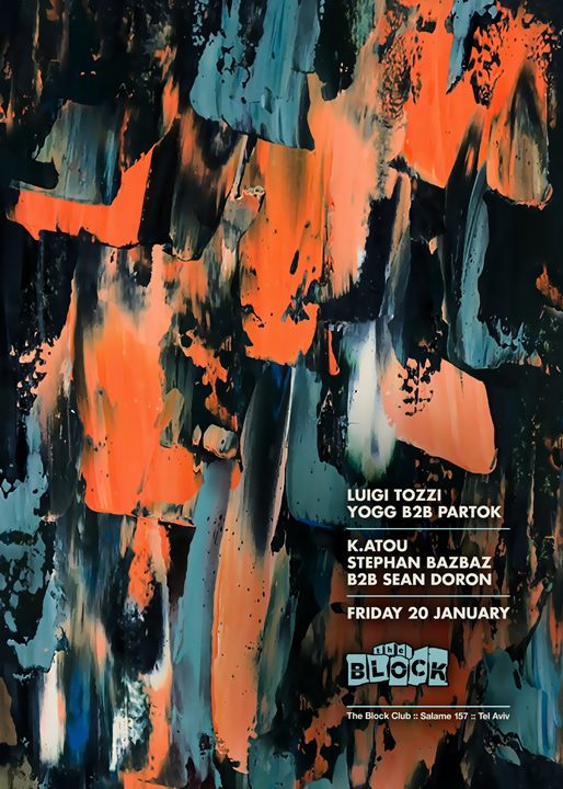 Description | Promotional artwork for an electronic music event in Tel Aviv (Israel). Guest Artists: LUIGI TOZZI (Hypnus Records, Outis :: Rome) K.ATOU (Revolt! :: Athens) The Block: Yogg b2b Partok The Squat: Stephan Bazbaz b2b Sean Doron |