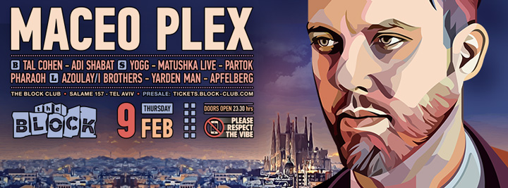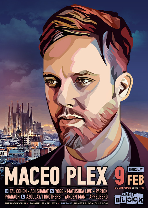 Description | Promotional artwork for an electronic music event in Tel Aviv (Israel). Guest Artists: MACEO PLEX (Ellum :: Barcelona, Miami) The Block: Tal Cohen - Adi Shabat The Squat: Yogg - Matushka LIVE - Partok - Pharaoh The Lounge: Azoulay/i Brothers - Yarden Man - Apfelberg |