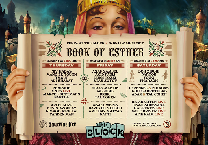 Description | Promotional artwork for an electronic music event in Tel Aviv (Israel). 🔴 Chapter 1 - THURSDAY 9.3 The Block: NIV HADAS (Tel Aviv) MANO LE TOUGH (Maeve :: Berlin) TV.OUT (Tel Aviv) ADI SHABAT (Tel Aviv) The Squat: PHARAOH (Tel Aviv) SNTS LIVE (Horizontal Ground :: Berlin) MARCEL DETTMANN (Ostgut Ton :: Berlin) PARTOK (Tel Aviv) The Lounge: APFELBERG (Tel Aviv) KEVIN AZOULAY (Tel Aviv) NIMROD AZOULAI (Tel Aviv) YARDEN MAN (Tel Aviv) 🔴 Chapter 2 - FRIDAY 10.3 The Block: ASAF SAMUEL (Tel Aviv) ACID PAULI (Ouïe :: Berlin) LUIGI TOZZI (Tel Aviv) STAS ZOTOV (Tel Aviv) The Squat: NIRAN MANTIN (Tel Aviv) MELODIE (Metereze :: Bucharest) PRIKU (Atipic :: Bucharest) TAL COHEN (Tel Aviv) The Lounge: ASAEL WEISS (Tel Aviv) DAVID ELIMELECH (Tel Aviv) AMICHAY MATYAS (Tel Aviv) NATTI (Tel Aviv) 🔴 Chapter 3 - SATURDAY 11.3 The Block: DOR ZIPORI (Tel Aviv) PARTOK (Tel Aviv) YOGG (Tel Aviv) PHARAOH (Tel Aviv) The Squat: IDIT FRENKEL (Tel Aviv) NIV HADAS (Tel Aviv) OFRI GOFFER (Tel Aviv) TOR GOFFER (Tel Aviv) ADAR COHEN (Tel Aviv) TAL COHEN (Tel Aviv) The Lounge: RE-ARBEITEN LIVE (Tel Aviv) TSAJI SOUSSANA (Tel Aviv) GAL PEREZ LIVE (Tel Aviv) MULE DRIVER LIVE (Tel Aviv) AFIK NAIM LIVE (Tel Aviv) |