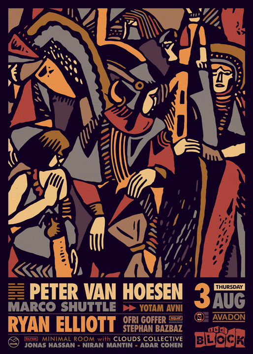 Description | Promotional artwork for an electronic music event in Tel Aviv (Israel). Guest Artists: PETER VAN HOESEN (Time To Express :: Berlin) RYAN ELLIOTT (Ostgut Ton :: Berlin) MARCO SHUTTLE (Eerie Records :: Berlin) The Block: Yotam Avni - Yogg The Squat: Ofri Goffer - Stephan Bazbaz The Lounge: Adar Cohen - Jonas Hassan - Niran Mantin Artwork: Remake of Jan Matulka - Red Indians (1917) |