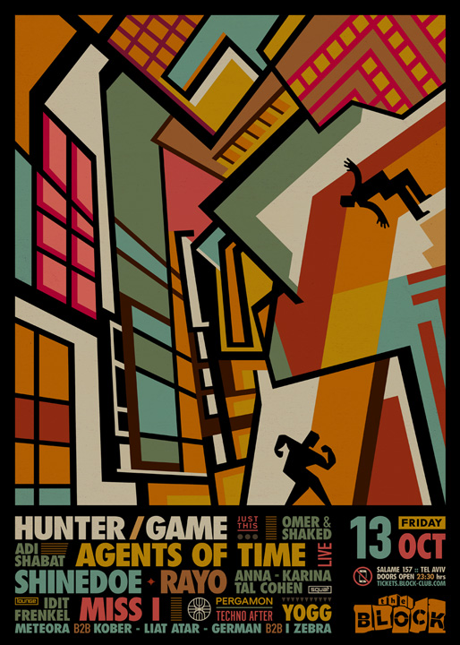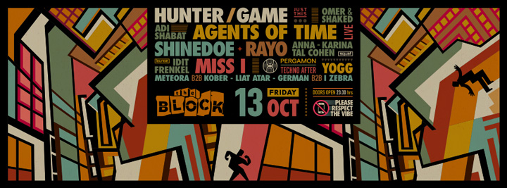 Description | Promotional artwork for an electronic music event in Tel Aviv (Israel). Guest Artists: HUNTER/GAME (Kompakt, Just This :: Milan) AGENTS OF TIME (Obscura, Ellum :: Bari) SHINEDOE (Intacto Records :: Amsterdam) RAYO (Arma17 :: Odessa) MISS I (Misbits :: Bucharest) The Block: Omer & Shaked - Adi Shabat The Squat: Anna Haleta - Tal Cohen The Lounge: Idit Frenkel - Yogg - Pergamon Techno After Artwork: Remake of Wyndham Lewis - Workshop (1914) |