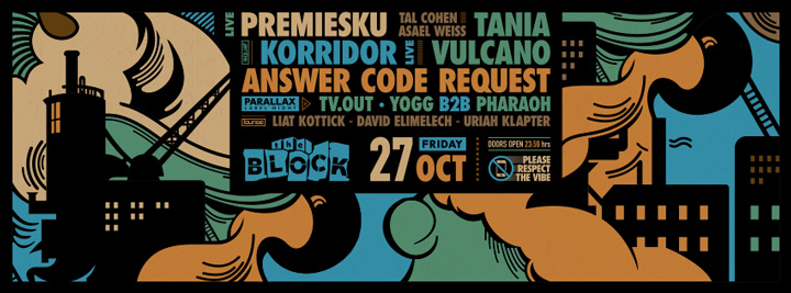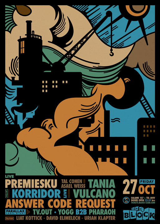 Description | Promotional artwork for an electronic music event in Tel Aviv (Israel). Guest Artists: PREMIESKU LIVE (Desolat, Apollonia :: Bucharest) TANIA VULCANO (Circoloco, DC10 :: Ibiza) KORRIDOR LIVE (Northern Electronics :: Stockholm) ANSWER CODE REQUEST (Ostgut Ton :: Berlin) The Block: Tal Cohen - Asael Weiss The Squat: Yogg b2b Pharaoh - TV.OUT The Lounge: Liat Kottick - David Elimelech - Uriah Klapter Artwork: Remake of Dorothy Burroughs - The Factory (1925) |