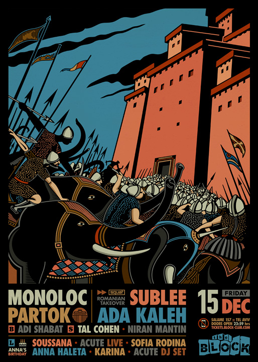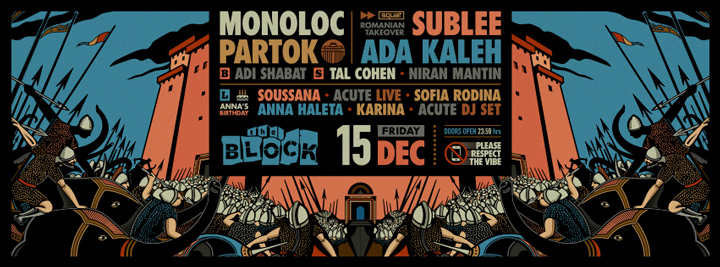 Description | Promotional artwork for an electronic music event in Tel Aviv (Israel). Guest Artists: MONOLOC LIVE (Afterlife, Dystopian :: Berlin) SUBLEE (Metereze :: Bucharest) ADA KALEH (R&S Records :: Bucharest) PARTOK (The Block :: Berlin) The Block: Adi Shabat The Squat: Tal Cohen - Niran Mantin The Lounge: Soussana - Acute LIVE - Sofia Rodina Anna Haleta (Birthday) - Karina - Acute DJ Set Artwork: Remake of Robert Gibbings - Untitled (1920s) |