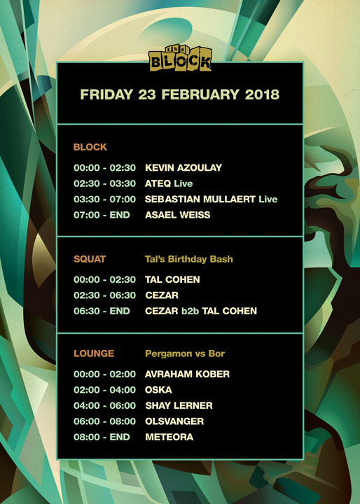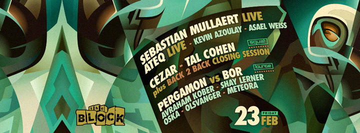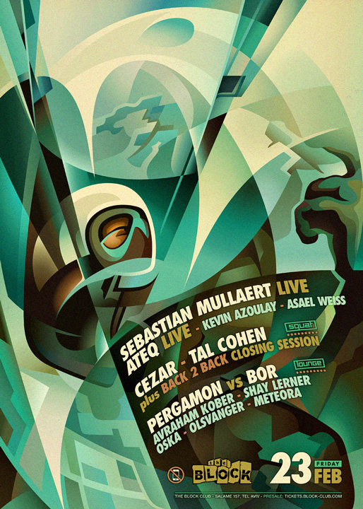 Description | Promotional artwork for an electronic music event in Tel Aviv (Israel). Guest Artists: SEBASTIAN MULLAERT LIVE (Wa Wu We :: Stockholm) ATEQ LIVE (Giegling :: Germany) CEZAR (Understand :: Bucharest) The Block: Kevin Azoulay - Asael Weiss The Squat: Tal Cohen (+ b2b closing with Cezar) The Lounge: Pergamon vs Bor feat: Avraham Kober - Shay Lerner - Oska - Olsvanger - Meteora Artwork: Remake of Tullio Crali - Involucro Aperto (1970) |