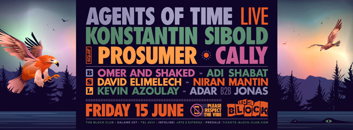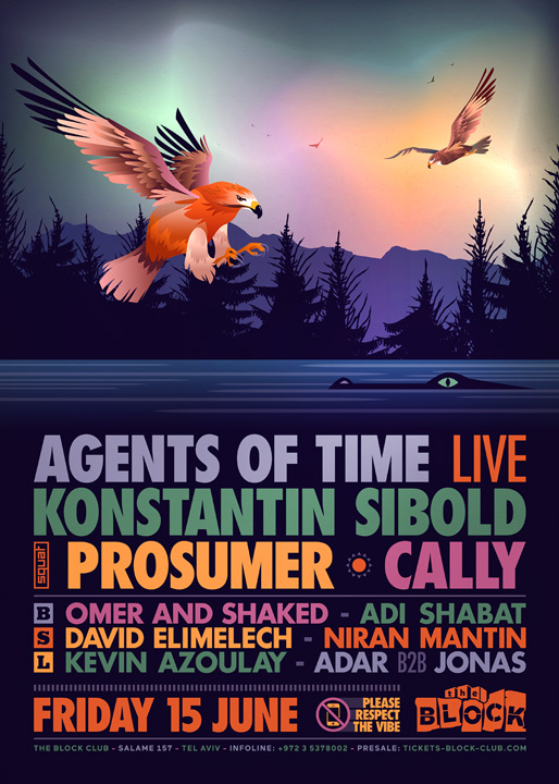 Description | Promotional artwork for an electronic music event in Tel Aviv (Israel). Guest Artists: AGENTS OF TIME LIVE (Obscura :: Bari) KONSTANTIN SIBOLD (Running Back :: Stuttgart) PROSUMER (Potion :: Edinburgh) CALLY (Sunrise :: Bucharest) The Block: Omer & Shaked - Adi Shabat The Squat: David Elimelech - Niran Mantin The Lounge: Kevin Azoulay - Adar Cohen - Jonas Hassan |