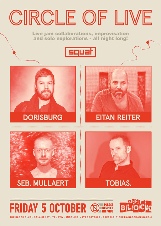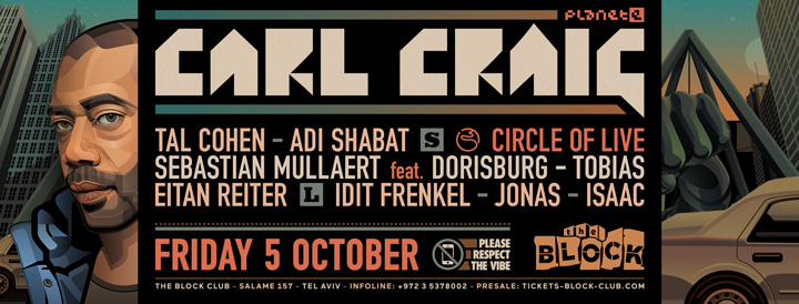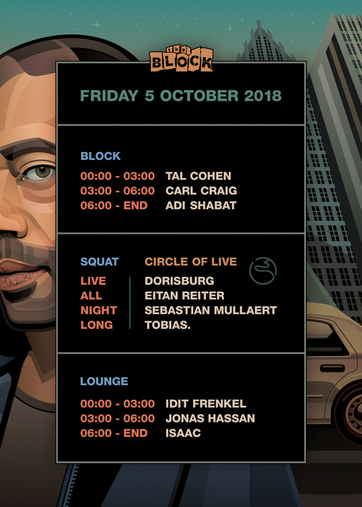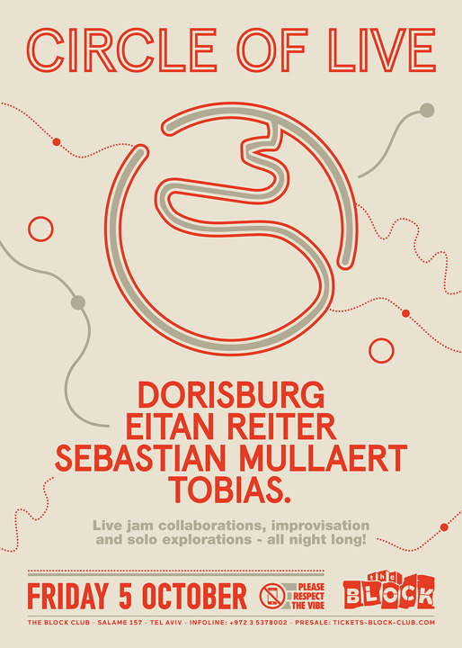 Description | Promotional artwork for an electronic music event in Tel Aviv (Israel). Guest Artists: CARL CRAIG (Planet E :: Detroit) SEBASTIAN MULLAERT LIVE (Wa Wu We :: Stockholm) DORISBURG LIVE (Hivern Discs :: Gothenburg) TOBIAS LIVE (Ostgut Ton :: Berlin) EITAN REITER LIVE (Aleph Zero :: Tel Aviv) The Block: Tal Cohen - Adi Shabat The Squat: Circle Of Live Artists The Lounge: Idit Frenkel - Jonas Hassan - Isaac |