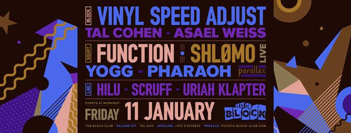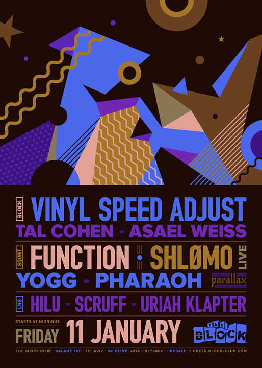 Description | Promotional artwork for an electronic music event in Tel Aviv (Israel). Guest Artists: FUNCTION (Sandwell District :: NYC) SHLØMO LIVE (Taapion, Delsin :: Paris) VINYL SPEED ADJUST (VSA Records :: Bucharest) The Block: Tal Cohen - Asael Weiss The Squat: Yogg - Pharaoh The Lounge: Hilu - Scruff - Uriah Klapter |