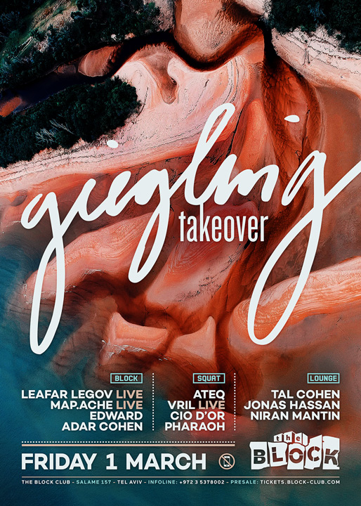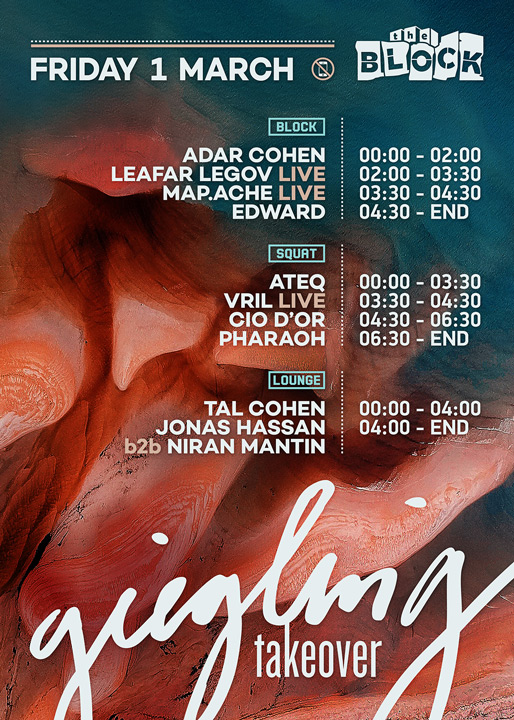 Description | Promotional artwork for an electronic music event in Tel Aviv (Israel). Guest Artists: LEAFAR LEGOV LIVE (Giegling :: Germany) MAP.ACHE LIVE (Giegling :: Germany) EDWARD (Giegling :: Germany) ATEQ (Giegling :: Germany) VRIL LIVE (Giegling :: Germany) CIO D'OR (Prologue, Semantica :: Cologne) The Block: Adar Cohen The Squat: Pharaoh The Lounge: Tal Cohen - Jonas Hassan - Niran Mantin |