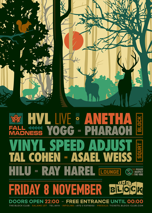 Description | Promotional artwork for an electronic music event in Tel Aviv (Israel). Guest Artists: HVL LIVE (Bassiani Records :: Tbilisi) ANETHA (Mama Told Ya :: Paris) VINYL SPEED ADJUST (VSA :: Bucharest) The Block: Yogg - Pharaoh The Squat: Tal Cohen - Asael Weiss The Lounge: Hilu - Ray Harel |