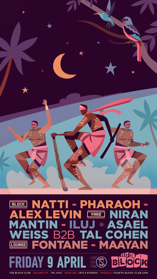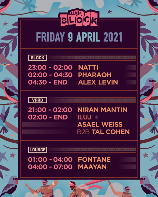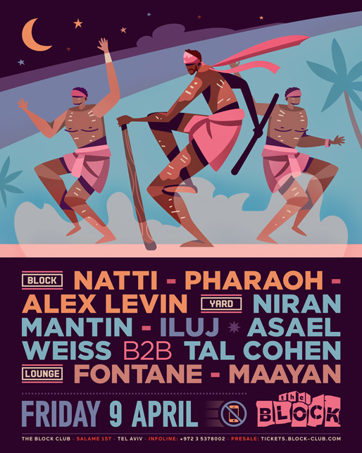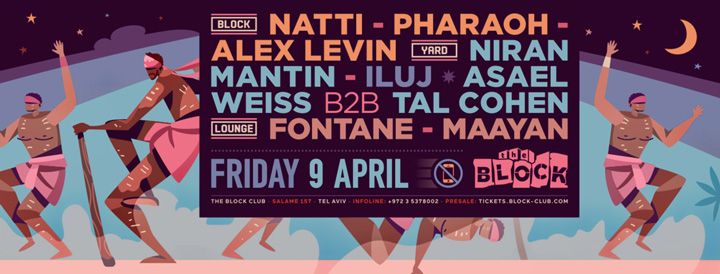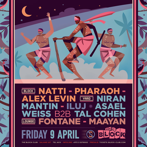 Description | Promotional artwork for an electronic music event in Tel Aviv (Israel). Friday 9 April 2021 The Saga Continues The Block: NATTI PHARAOH ALEX LEVIN The Yard / Squat: NIRAN MANTIN ASAEL WEISS TAL COHEN The Lounge: FONTANE MAAYAN DODO |