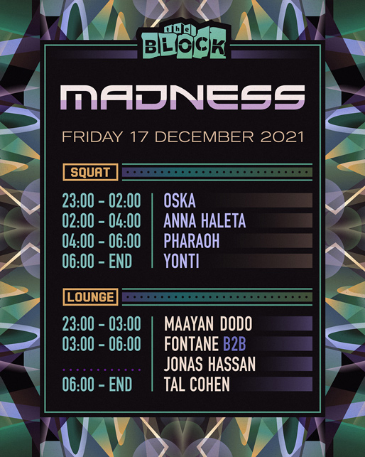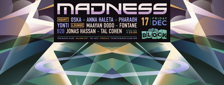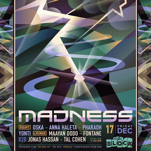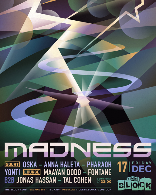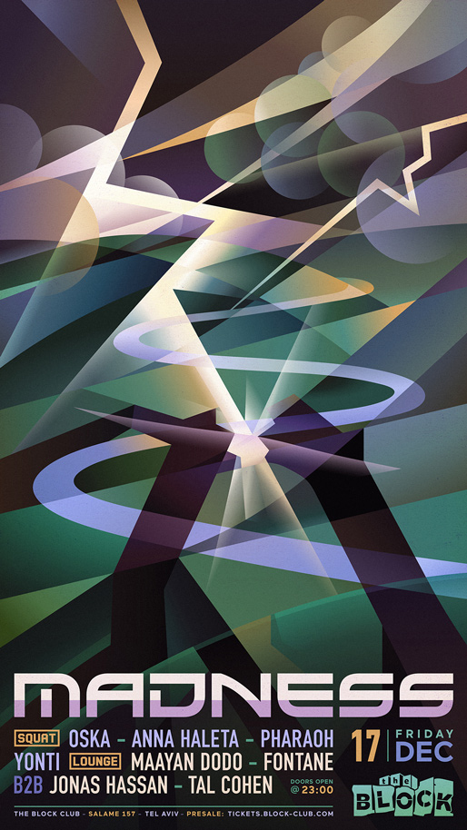 Description | Promotional artwork for an electronic music event in Tel Aviv (Israel). Friday 17 December 2021 The Block & Collage present: Madness The Squat: OSKA ANNA HALETA PHARAOH YONTI The Lounge: MAAYAN DODO TAL COHEN JONAS HASSAN FONTANE The Yard: Relaxation & Discussion area Artwork: Remake of Alessandro Bruschetti - Il Fulmine (1932) |