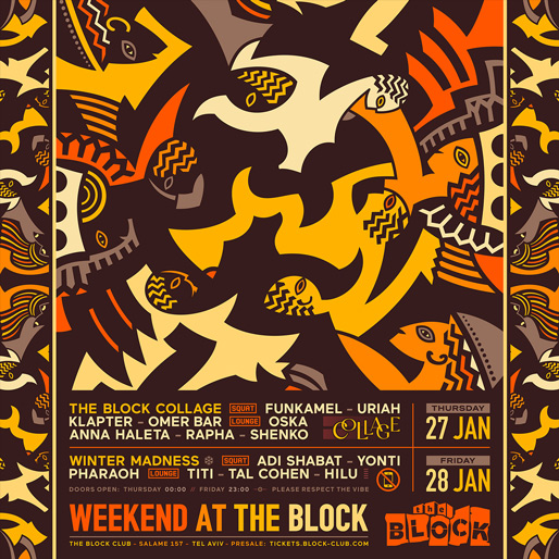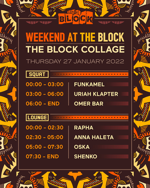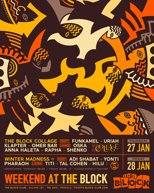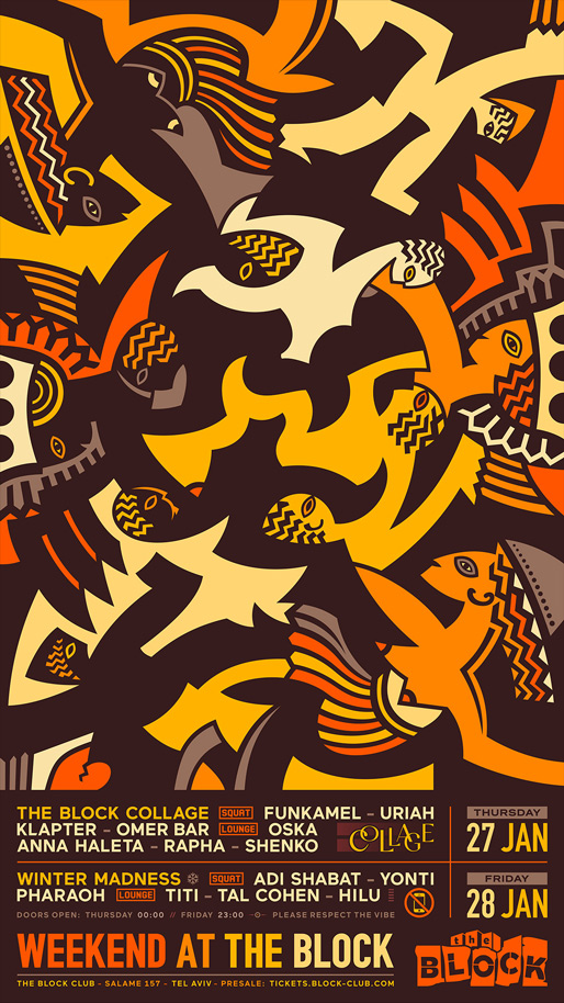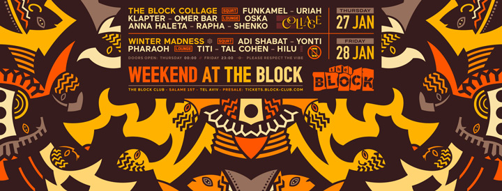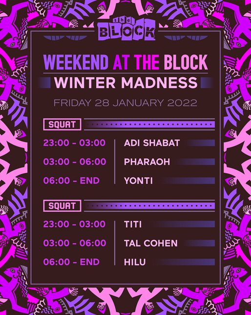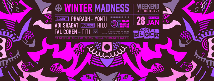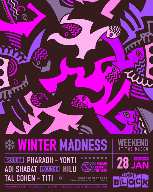 Description | Promotional artwork for an electronic music event in Tel Aviv (Israel). Thursday 27 January 2022 The Block & Collage The Squat: FUNKAMEL URIAH KLAPTER OMER BAR The Lounge: RAPHA ANNA HALETA OSKA SHENKO Friday 28 January 2022 Winter Madness The Squat: ADI SHABAT PHARAOH YONTI The Lounge: TITI TAL COHEN HILU The Yard: Relaxation, Discussion & Dance area Artwork: Remake of Cyril Edward Power - Matriarchy (1930) |
