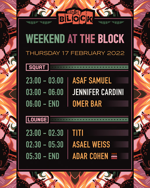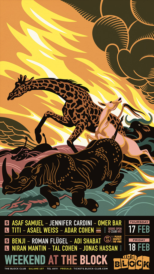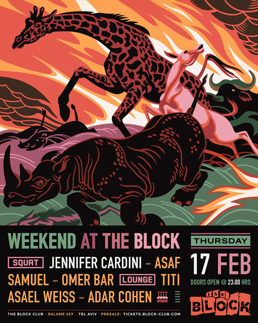 Description | Promotional artwork for an electronic music event in Tel Aviv (Israel). Thursday 17 February 2022 Part 1 The Squat: ASAF SAMUEL JENNIFER CARDINI (Berlin) OMER BAR The Lounge: TITI ASAEL WEISS ADAR COHEN Friday 4 February 2022 Part 2 The Squat: BENJI ROMAN FLÜGEL (Berlin) ADI SHABAT The Lounge: NIRAN MANTIN TAL COHEN JONAS HASSAN Artwork: Remake of Norbertine Bresslern-Roth - Bush Fire (1930) |