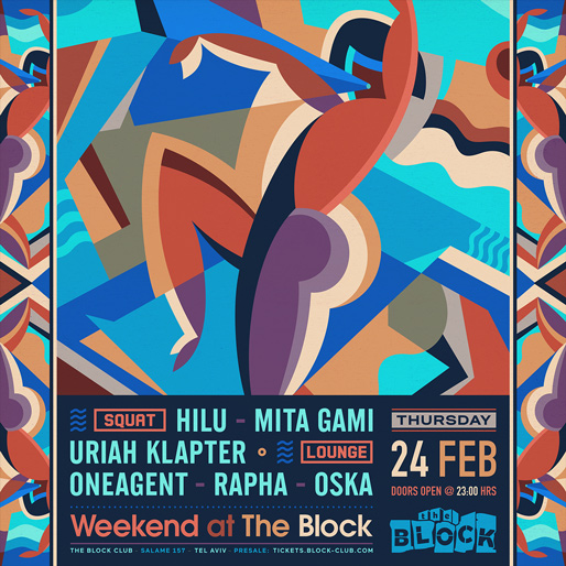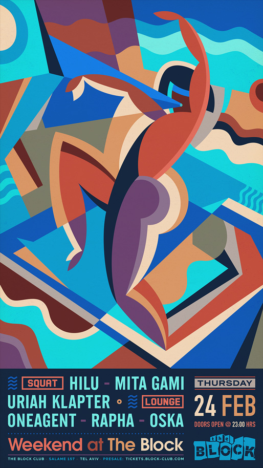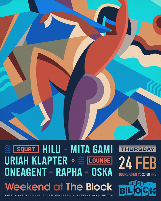 Description | Promotional artwork for an electronic music event in Tel Aviv (Israel). Thursday 24 February 2022 Weekend Part 1 The Squat: HILU MITA GAMI URIAH KLAPTER The Lounge: ONEAGENT RAPHA OSKA Artwork: Remake of Nikolay Diulgheroff - Dancers (1928) |